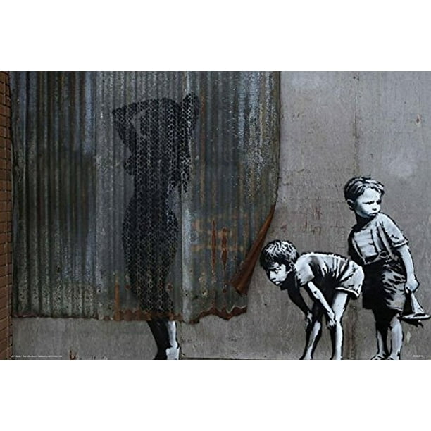 Banksy Peek A Boo Shower 36x24 Urban Graffiti Art Print Poster Walmart Com